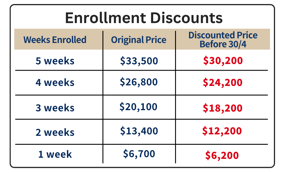 Enrol for 4 courses (each worth $6,900) over the entire 6 weeks: Pay only $24,600